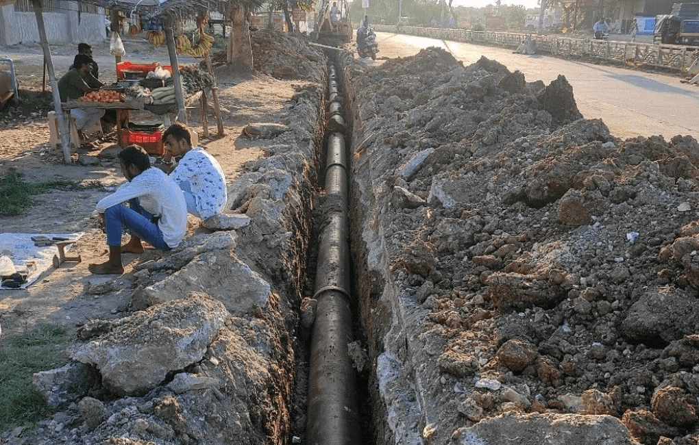 5. Providing and laying a 450mm diameter MS pipe at the Neelam chowk railroad crossing with the help of Trenchless Technology. Testing and commissioning completed.